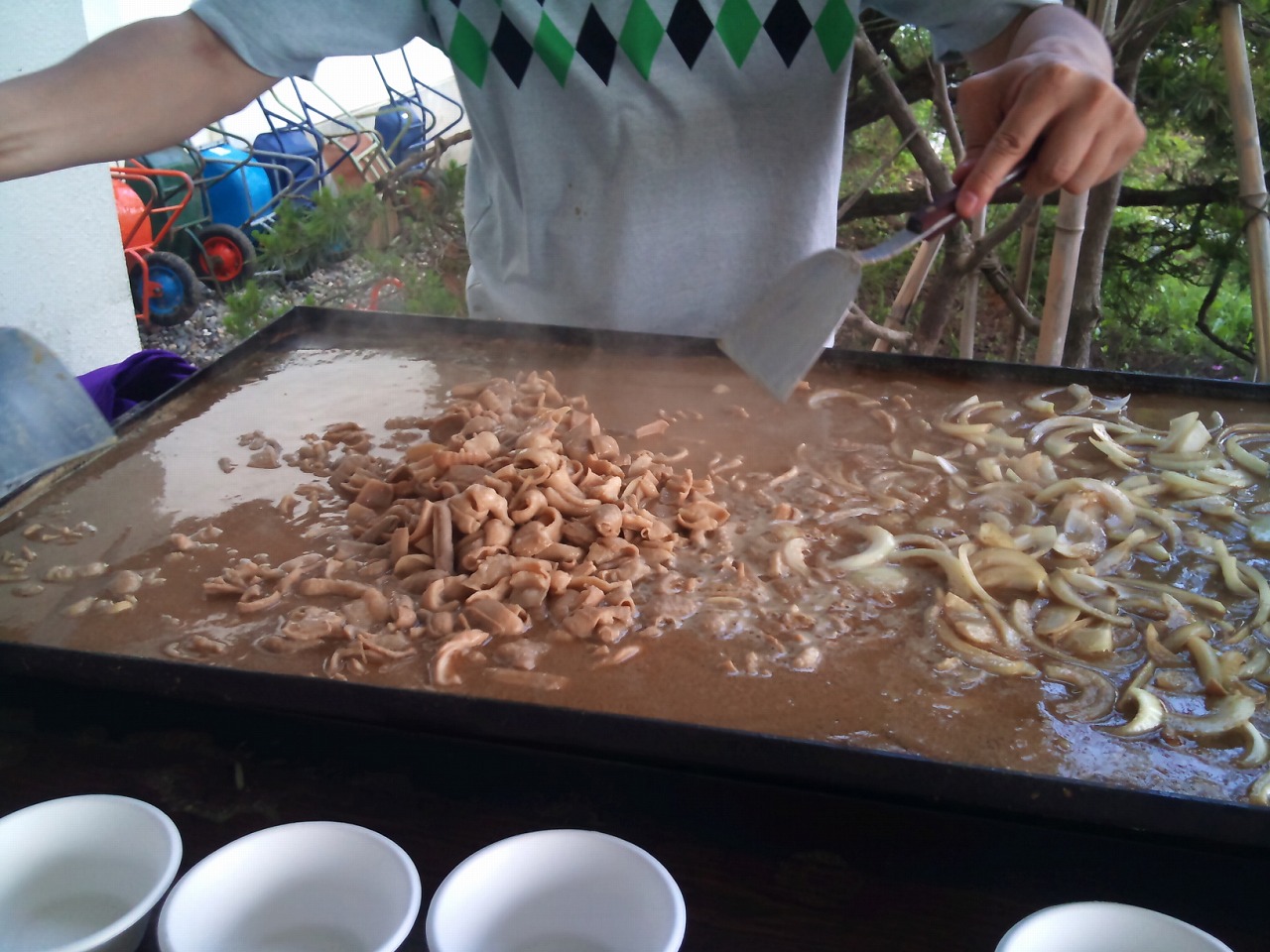 由仁町商工会青年部名物イケメン!?焼きそば専用の鉄板。